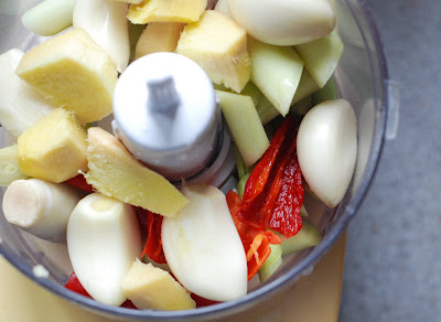 Whilst that's bubbling away, blend the ingredients in a blender with 4-6 tablespoons of water until you have a thick, slightly coarse sludge.