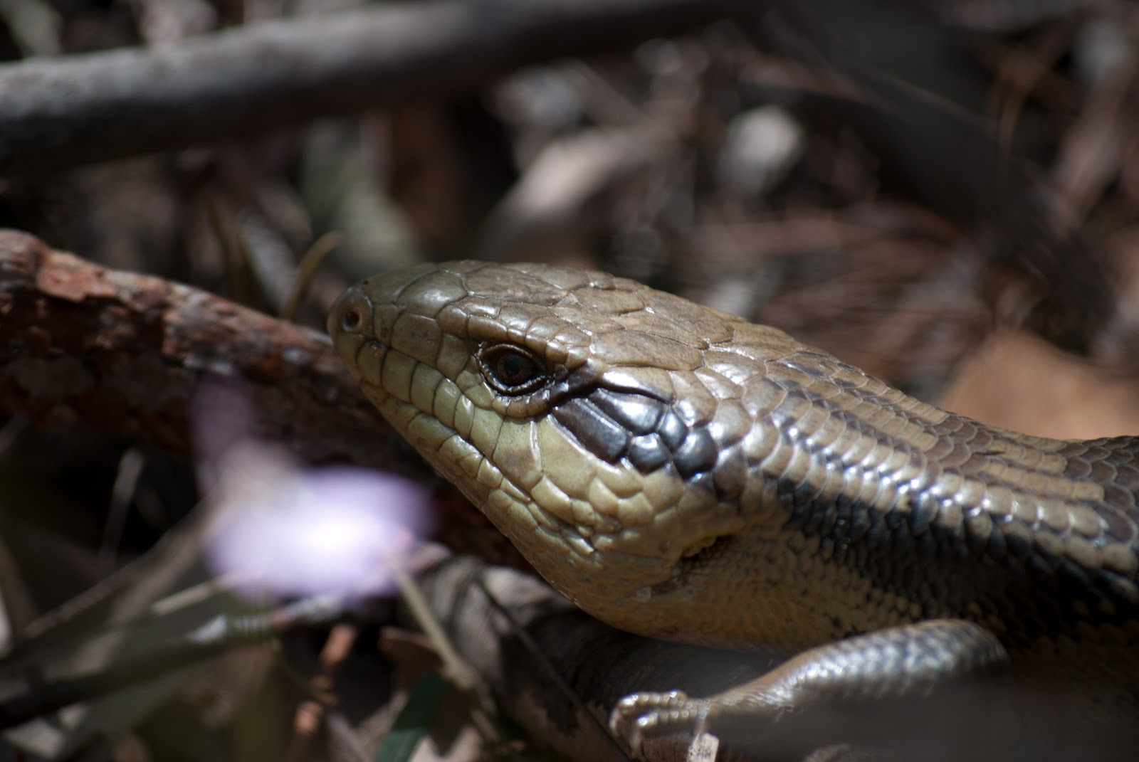 and a fairly juvenile Blue Tongue lizard, who'd draped himself over a branch to get more sun.